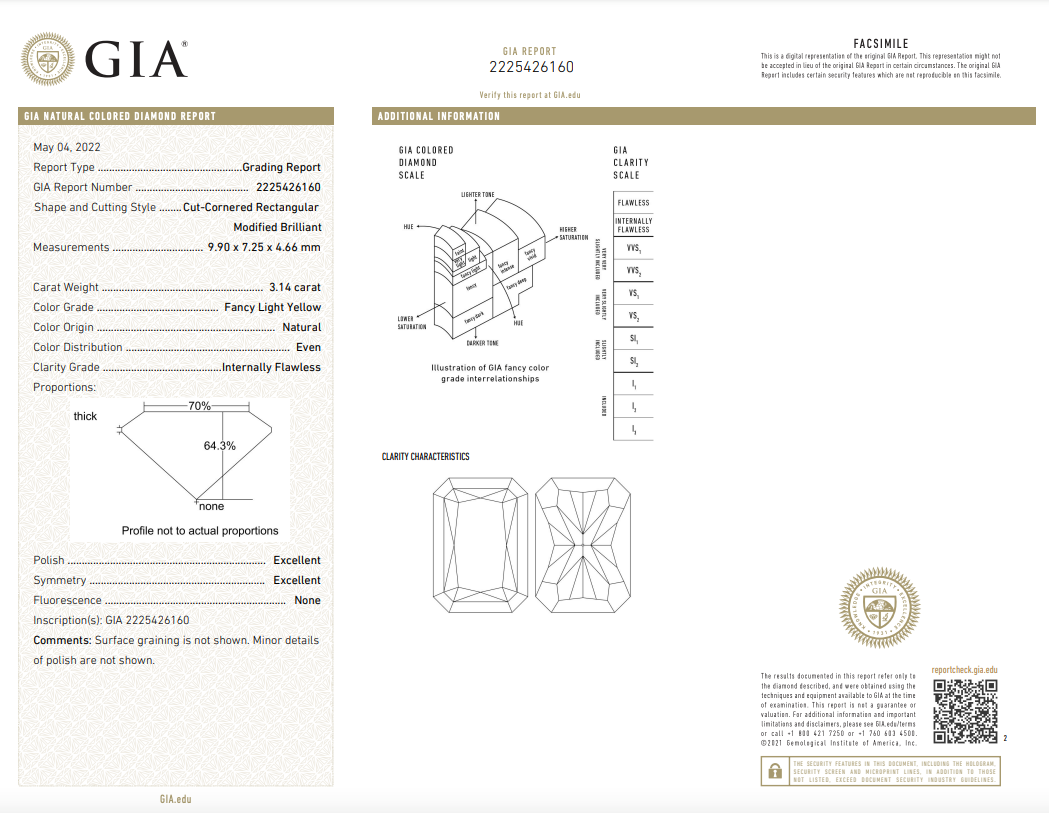 - 3.14 Carat Fancy Light Yellow Elongated Radiant Cut