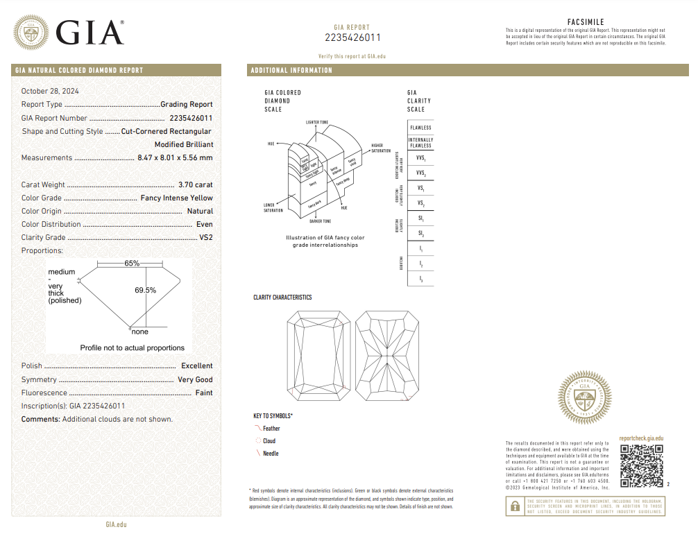 3.70ct Fancy Intense Yellow Radiant Cut Diamond - Loose