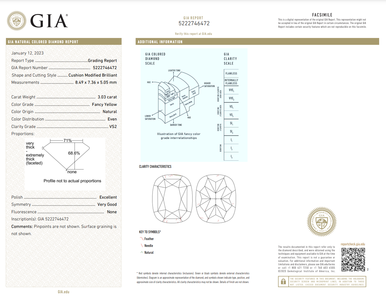 3 Carat Fancy Yellow Cushion Diamond Engagement Ring