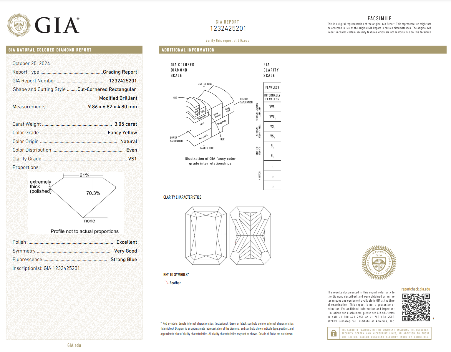 3 Carat Fancy Yellow Elongated Radiant Diamond Engagement Ring
