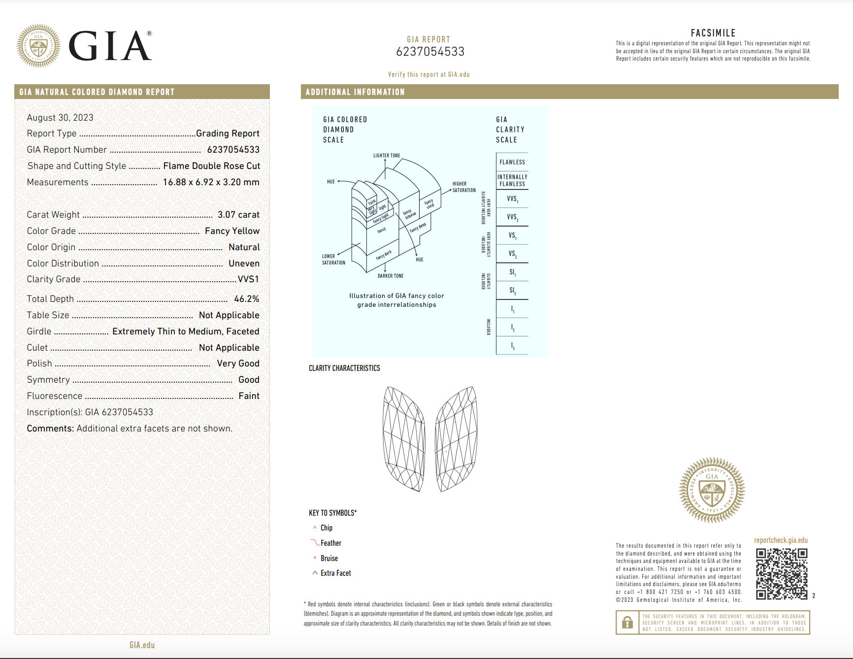 3 Carat Yellow 'Flame Cut' Diamond Ring