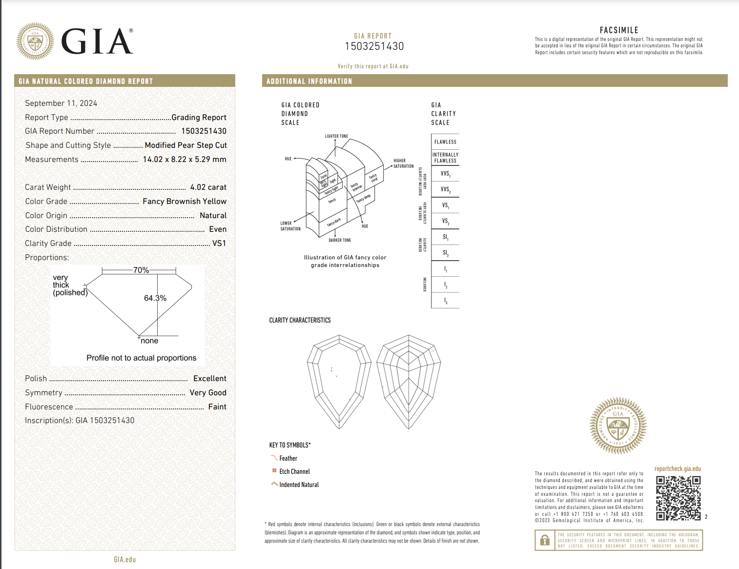 4.02ct Fancy Brownish Yellow Pear Step Cut Diamond - Loose