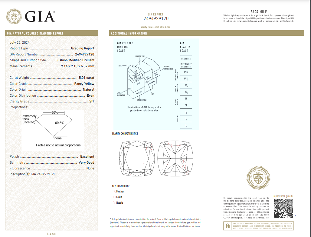 5.01ct Fancy Yellow Cushion Cut Diamond - Loose