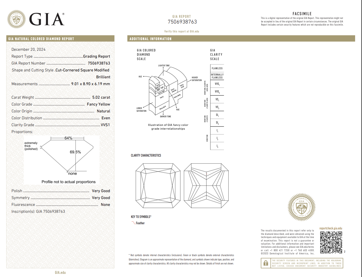 5.02ct Fancy Yellow Radiant Cut Diamond - Loose