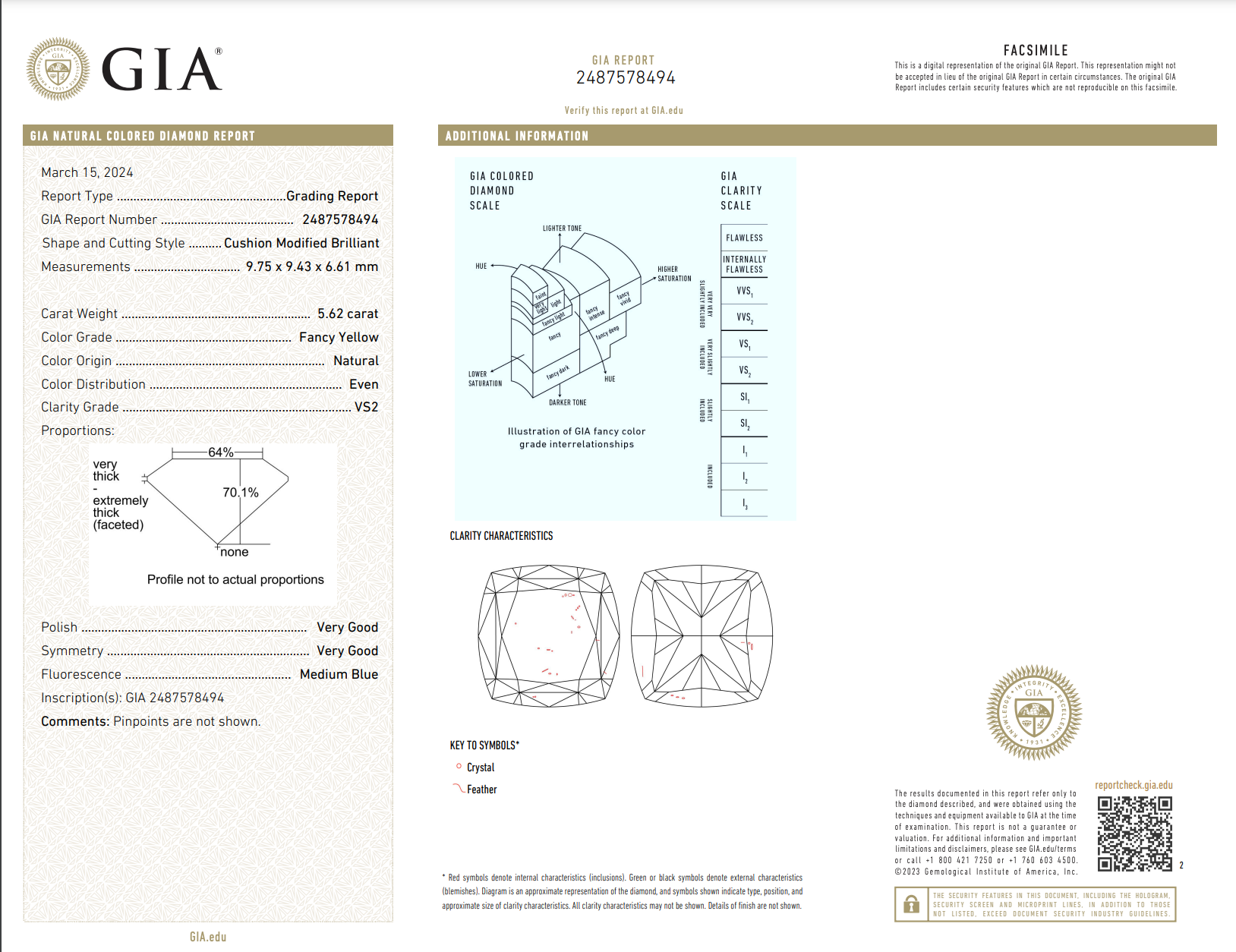 5.62ct Fancy Yellow Cushion Diamond Three Stone Ring