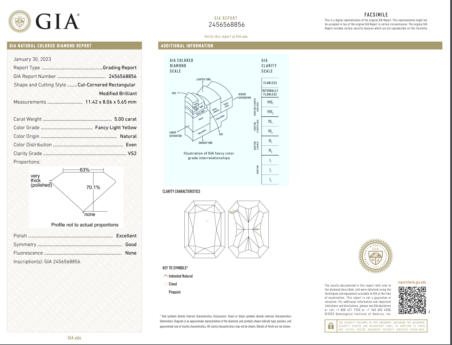 A softer shade of sunshine that’s endlessly elegant. This 5.00 ct Fancy Light Yellow radiant cut diamond captures the delicate glow of morning light. Its pale, buttery hue is a sophisticated and unique alternative to more saturated yellows, perfect for those who love color but prefer a more subtle, refined statement. The elongated radiant cut ensures it still delivers that jaw-dropping sparkle you expect from every angle.