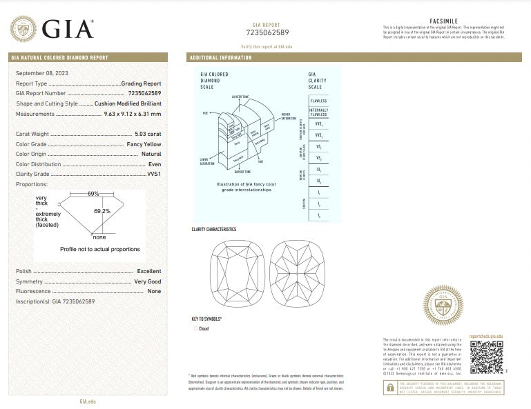 5ct Fancy Yellow Cushion Cut Diamond Ring