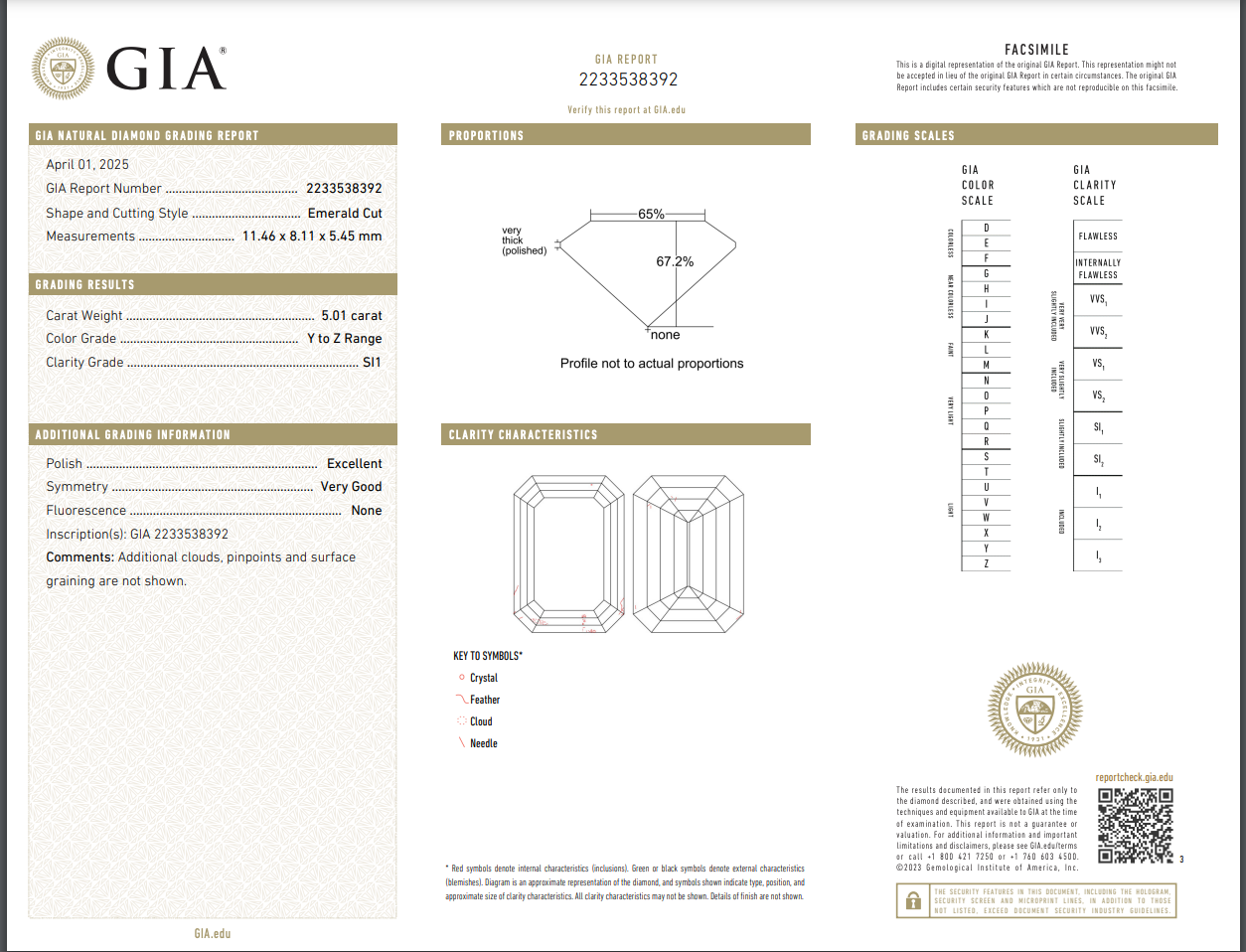 A bold yet classic design featuring a radiant 5.01ct yellow emerald-cut diamond, flanked by sleek epaulette sidestones. Crafted in platinum and yellow gold—this ring is a standout piece with serious sparkle and modern edge.