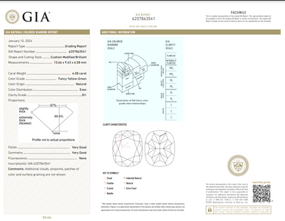 6.08ct Fancy Yellow-Green Cushion Cut Diamond Engagement Ring