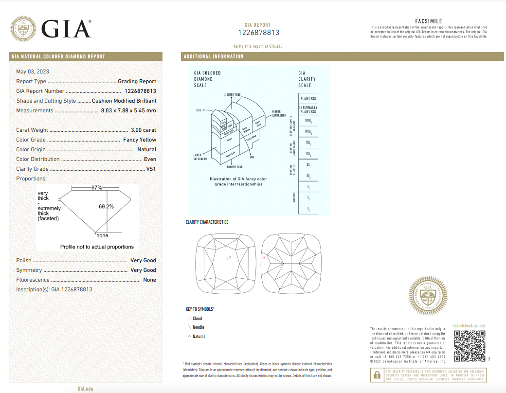 - 3.00 Carat Fancy Yellow Cushion VS1