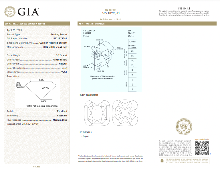 - 3.12 Carat Fancy Yellow Cushion VVS1