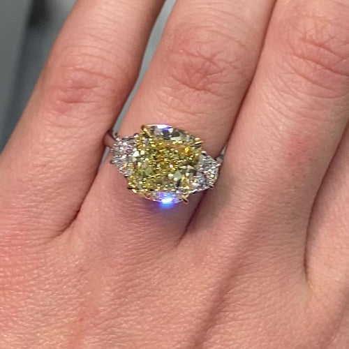 7ct Fancy Yellow Cushion Diamond Engagement Ring