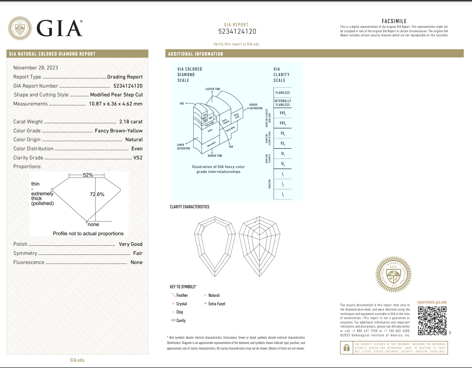 This unique champagne diamond ring features a natural Fancy Brown-Yellow pear-shaped step cut diamond, surrounded by a halo of white baguette diamonds that beautifully highlight the center stone. Set in warm rose gold, the design enhances the rich golden tones for a stunning look.