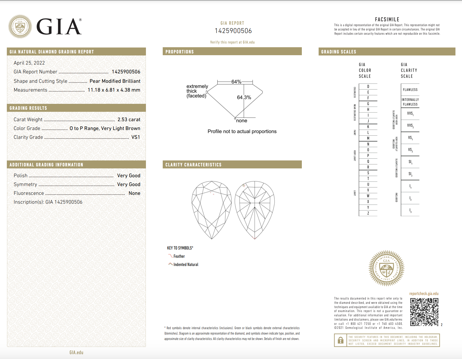 - 'Very Light Brown' Center Diamond with sweet pink hue