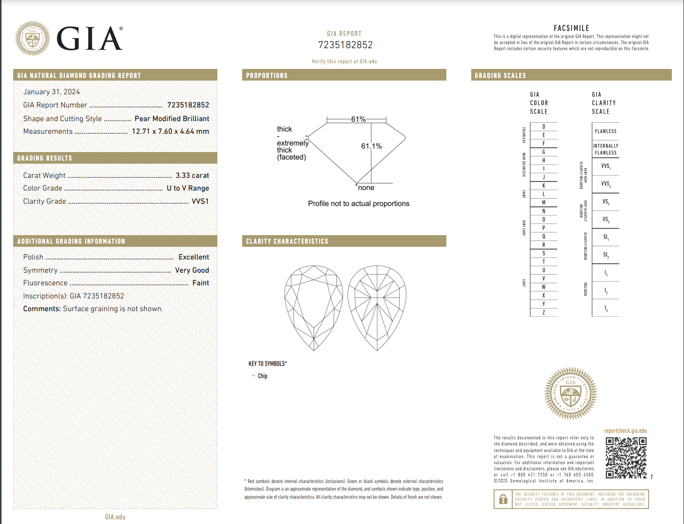 - 3.33ct Light Yellow (U-V Range) VVS1 Clarity