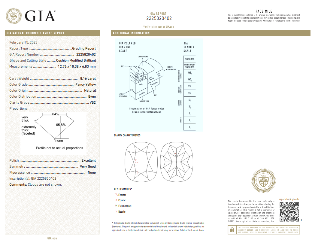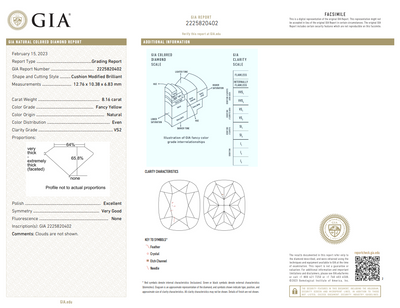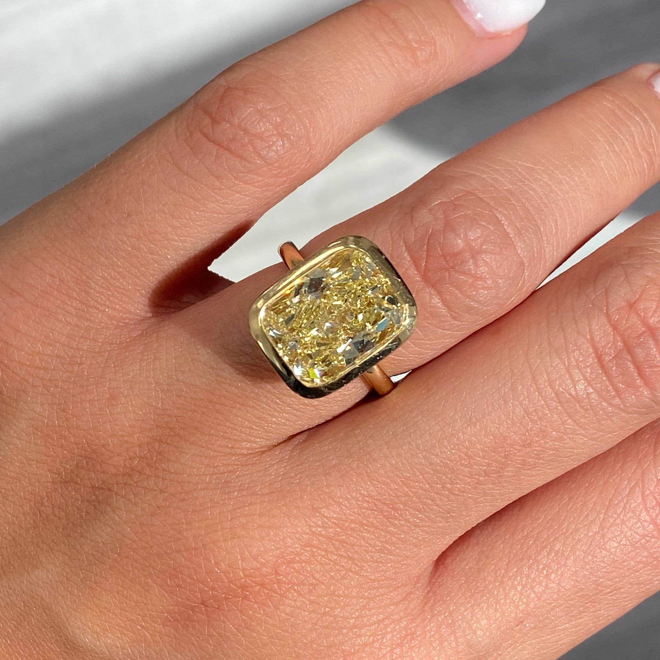 The 8 carat yellow diamond ring's premium features do not end there. Our jewelers crafted this piece by hand by combining platinum and 18K yellow gold for its cup to further enhance the ring's color. And to ensure the highest quality, we only rely on the tested NYC-based master craftsmen. Their focus is impressive and assures you of a piece designed to last.