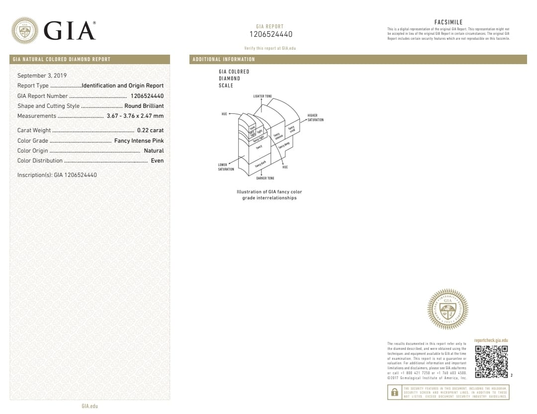 - 0.22 carat Fancy Intense Pink Round (GIA)