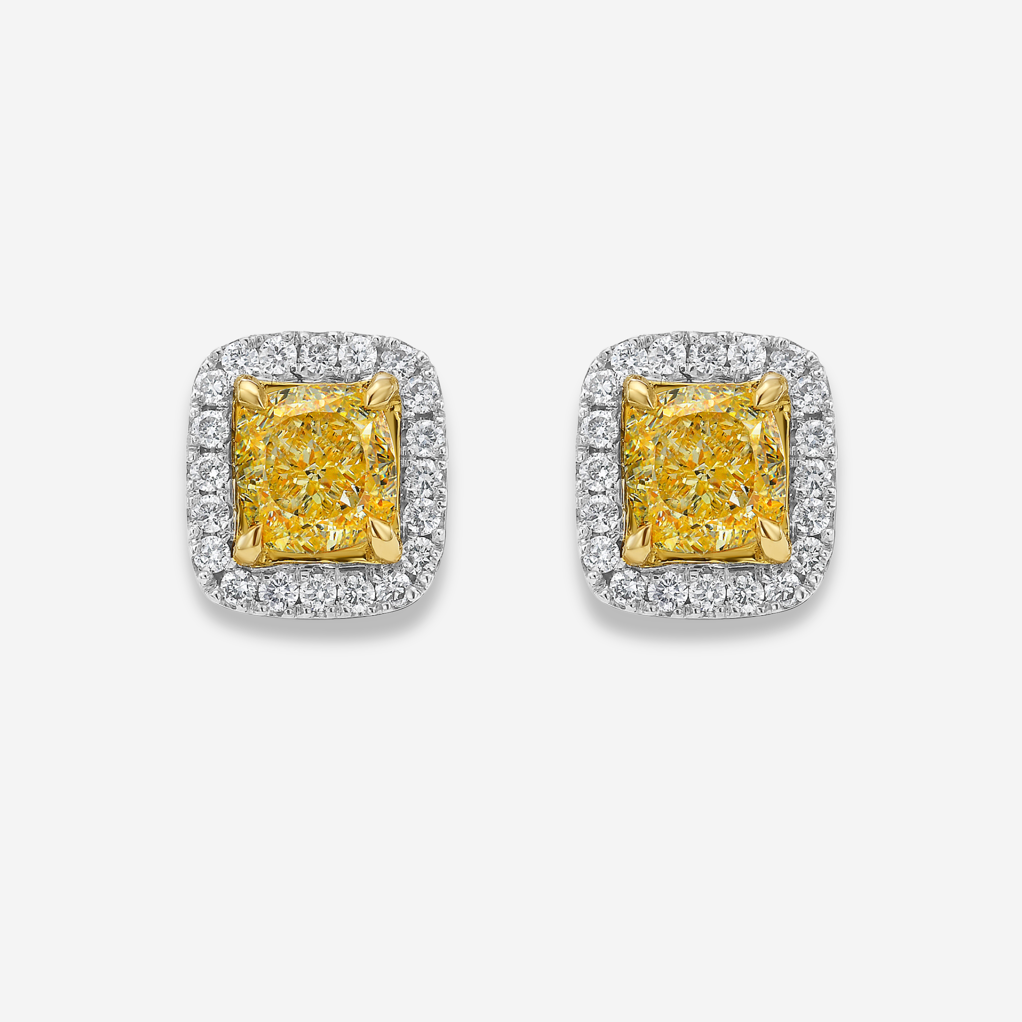 1.42ct Fancy Light Yellow Halo Diamond Studs