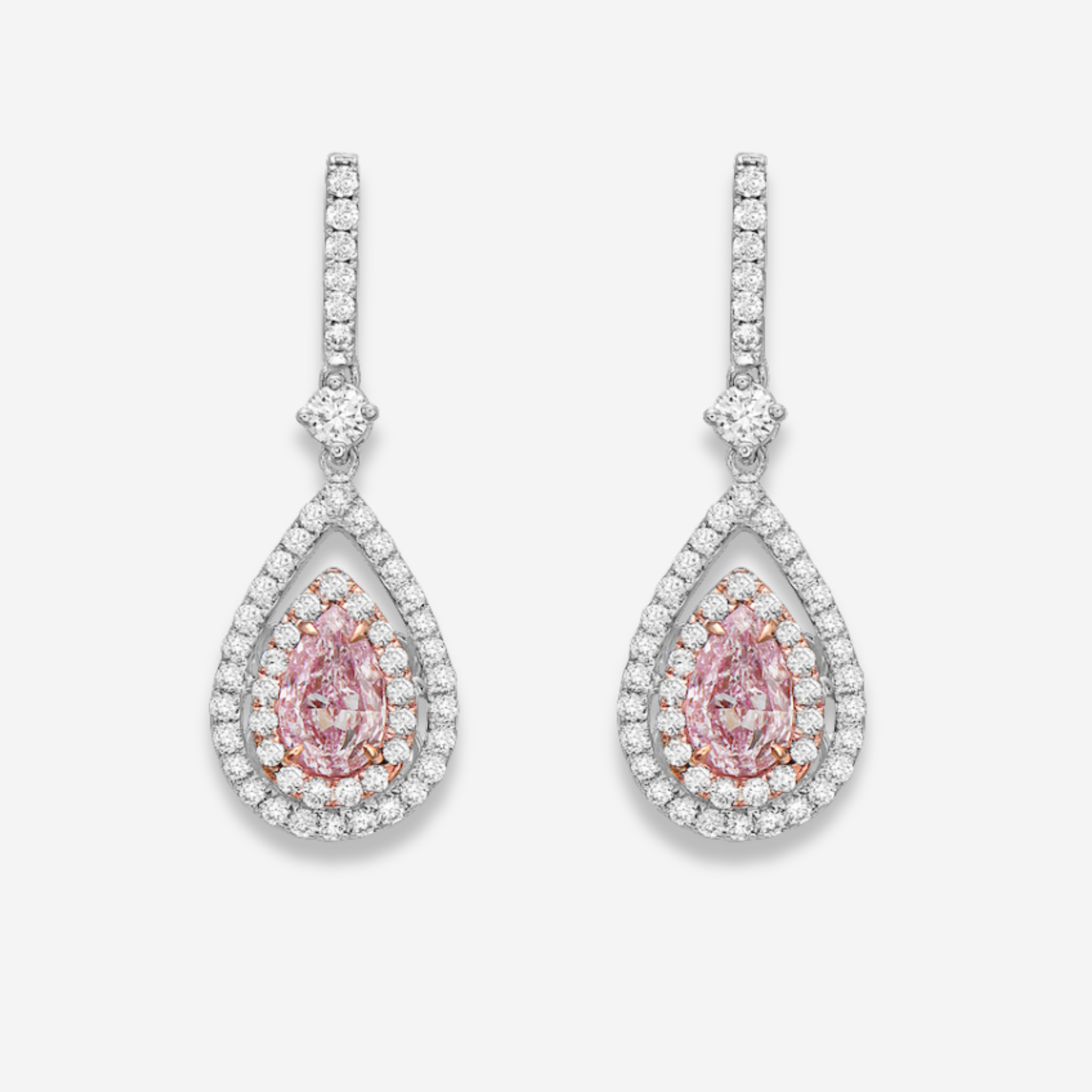 These pink diamond drop earrings are a beautiful and elegant piece that can add a touch of glamour to any outfit, and can be worn every day! These earrings were designed to sweeten and deepen the pink diamonds.