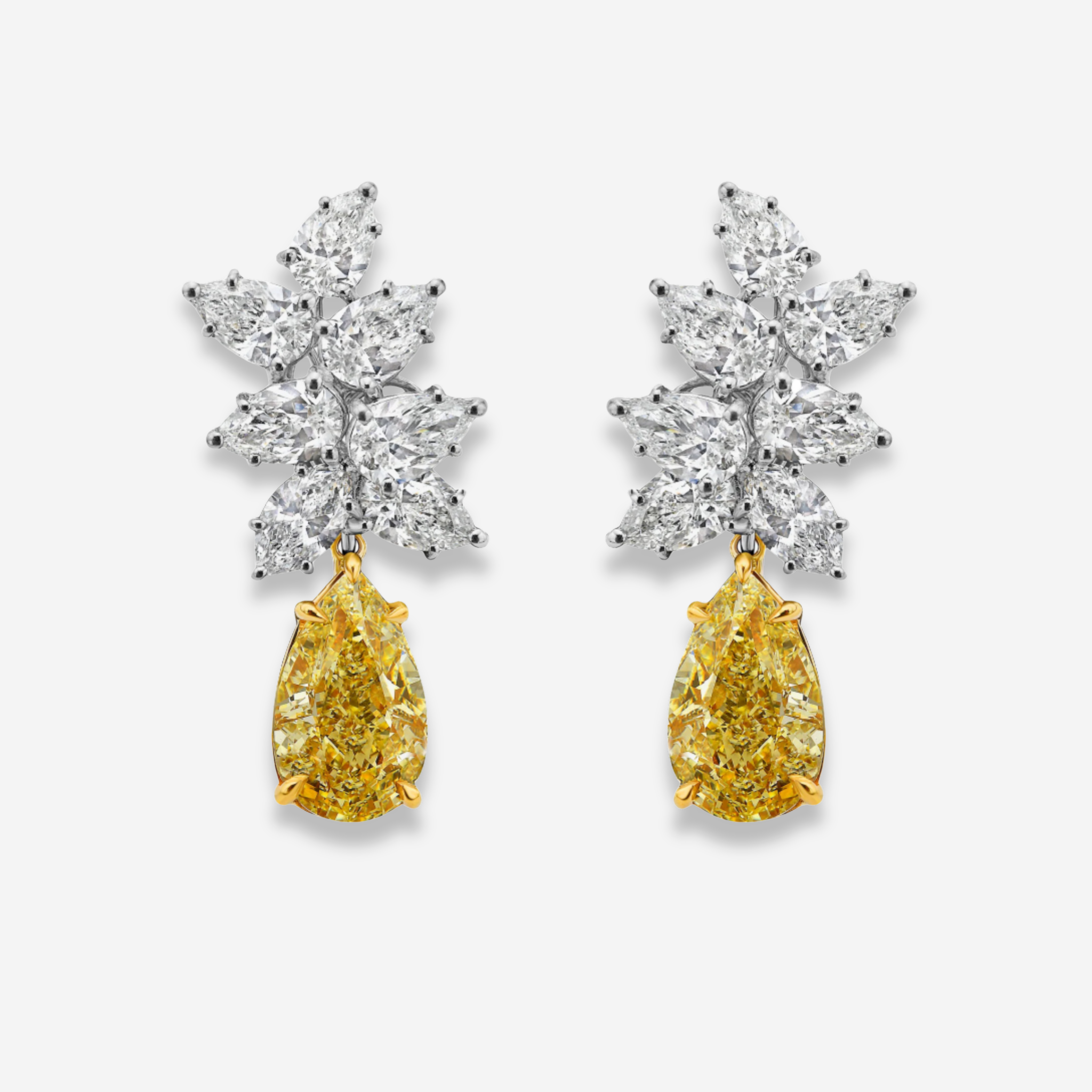 3 Carat Each Yellow Diamond With White Diamond Cluster Earrings