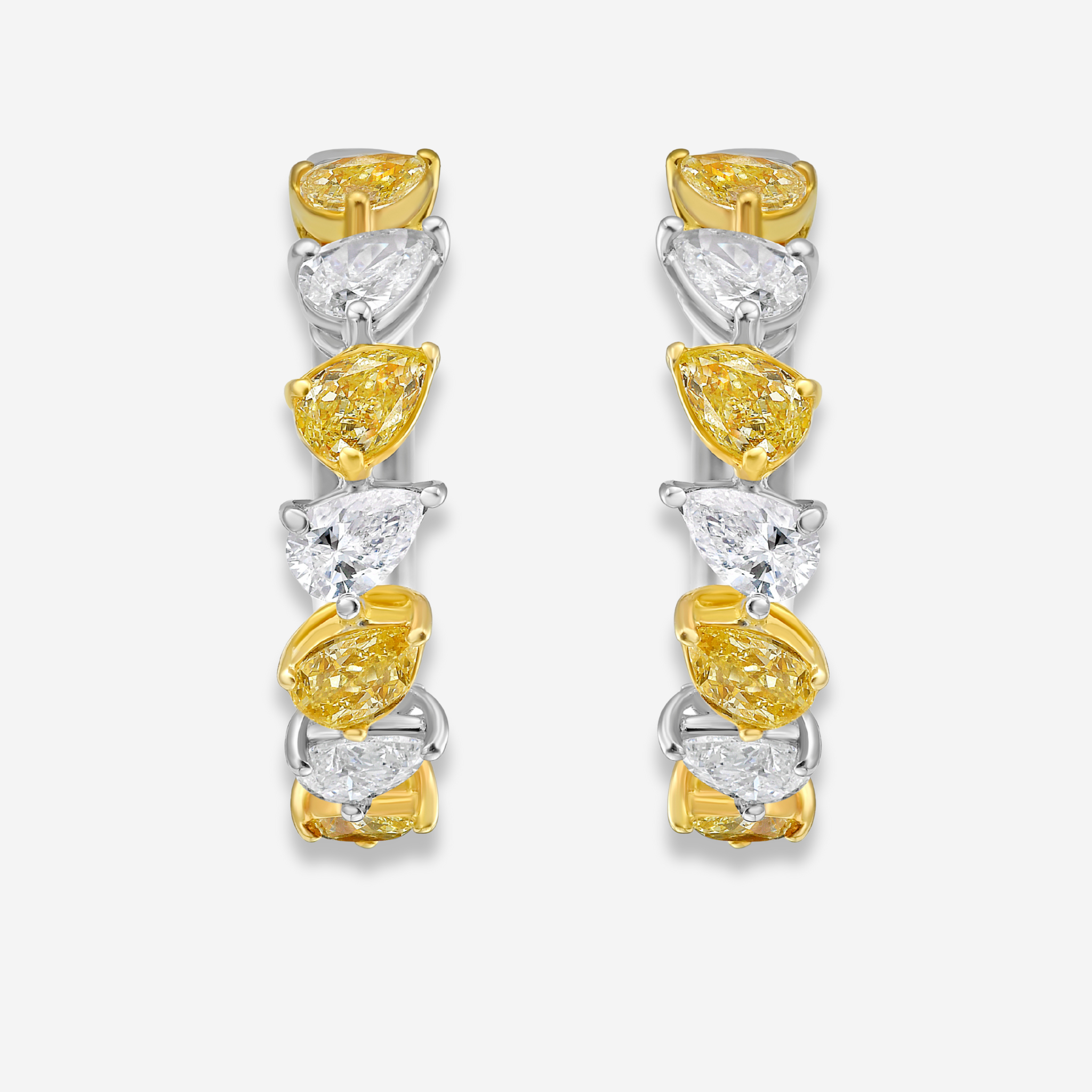 Yellow and White Pear Diamond Mini Hoop Earrings