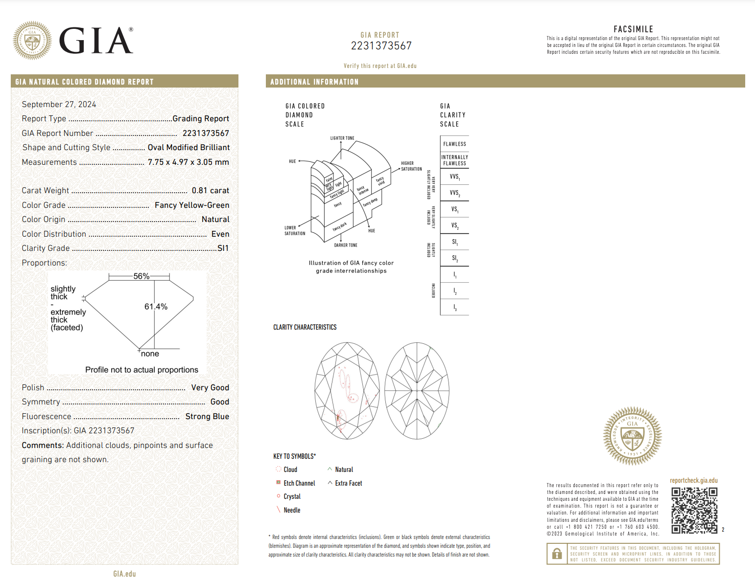 • Strong Blue Fluorescence attributing to this diamond's neon hue