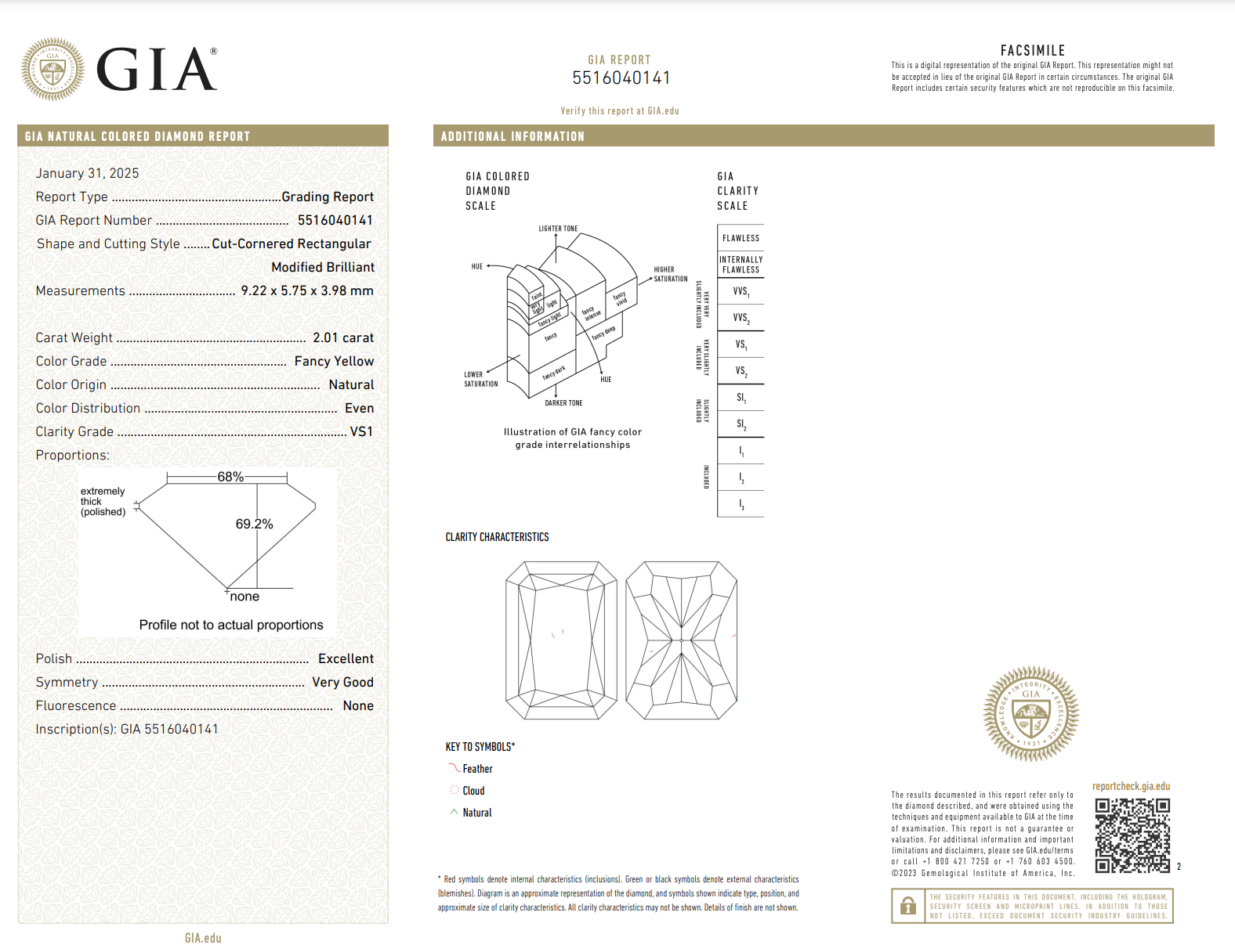 2.01ct Fancy Yellow Elongated Radiant Cut Diamond