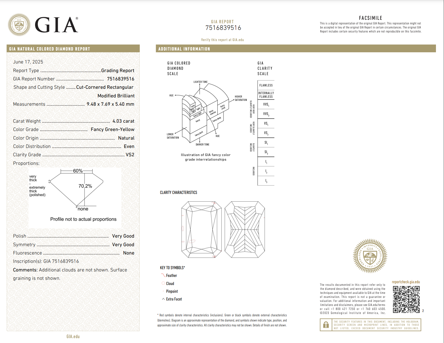 4.03 Carat Fancy Green-Yellow Elongated Radiant Diamond - Loose