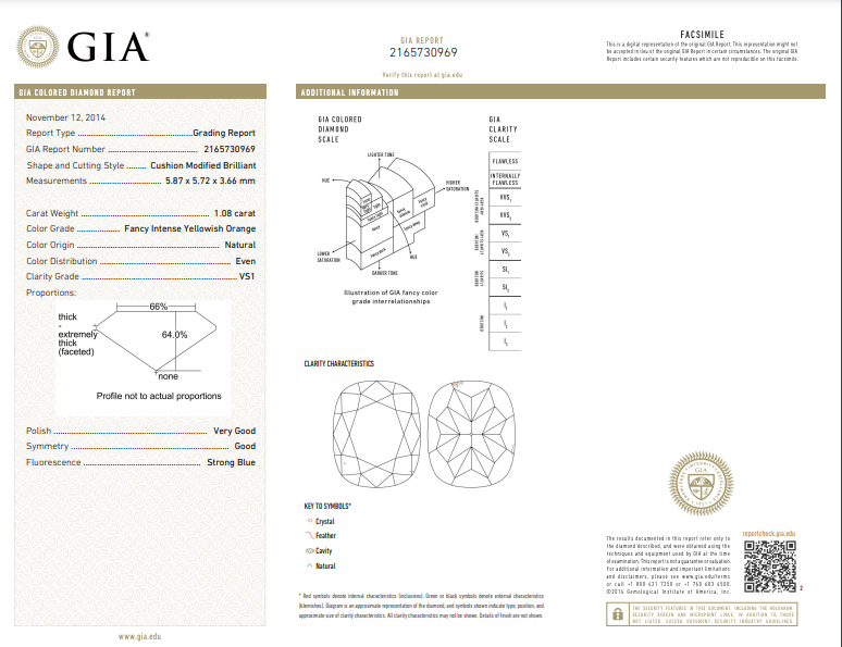 1.08ct Fancy Intense Yellowish Orange Cushion Cut Diamond