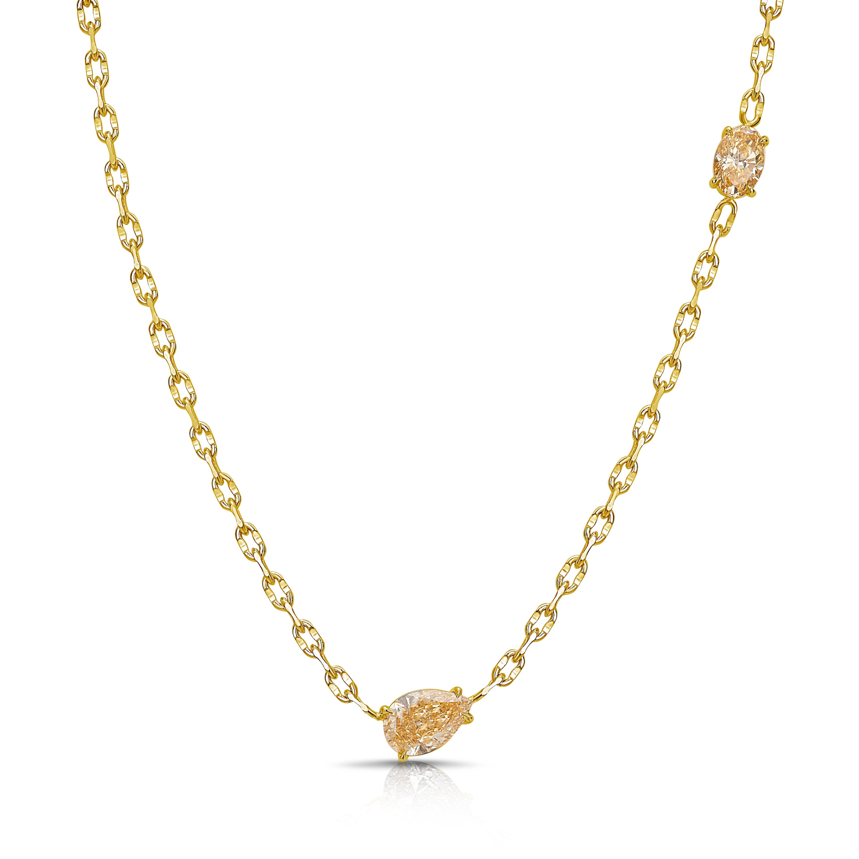 The allure of champagne diamonds lies in their understated richness, and this necklace brings that character to life with a refined station design. Each diamond is carefully set to showcase its natural warmth and brilliance, creating a piece that feels both timeless and distinctive. Crafted in 18k gold and handmade in NYC, it is an elegant expression of rarity and sophistication.