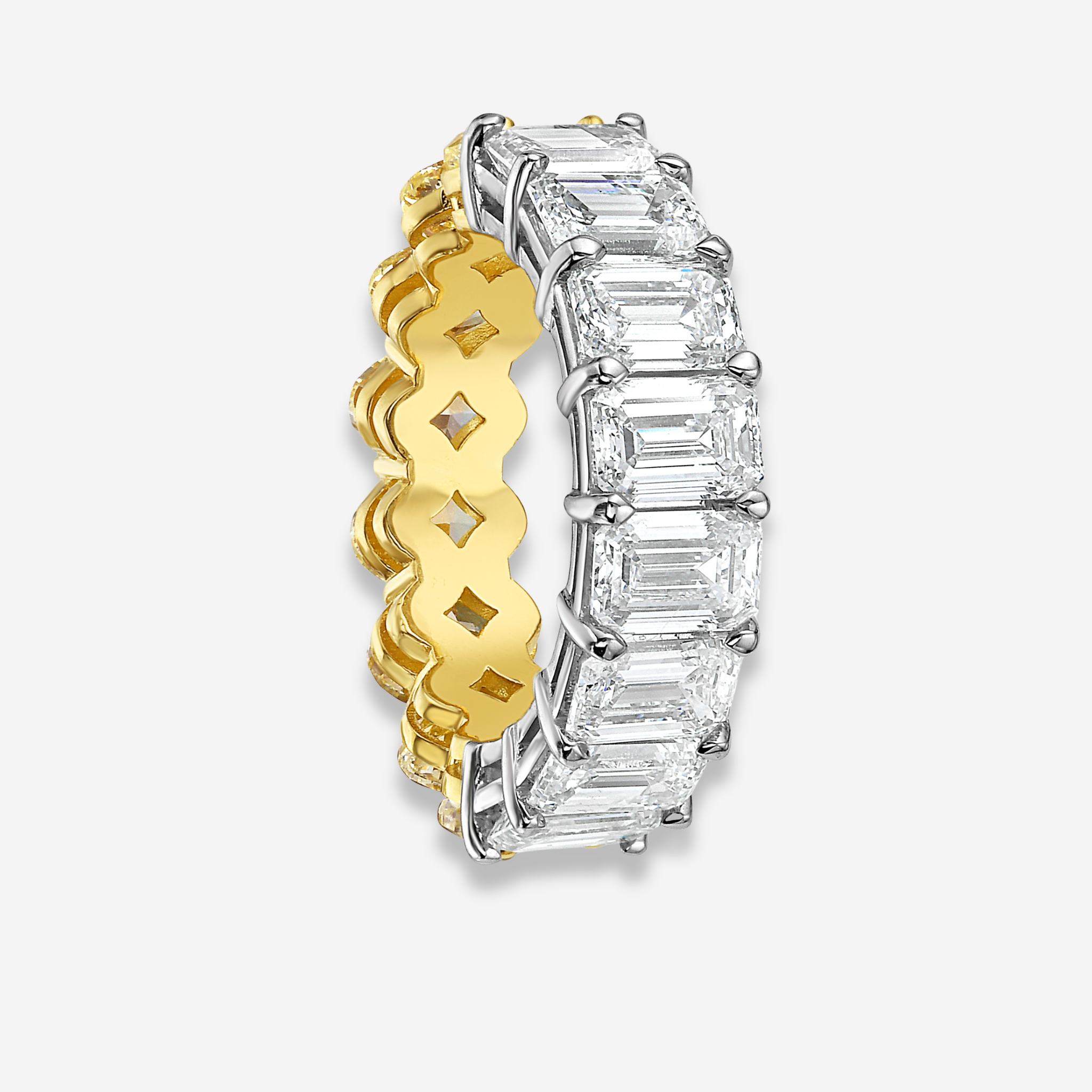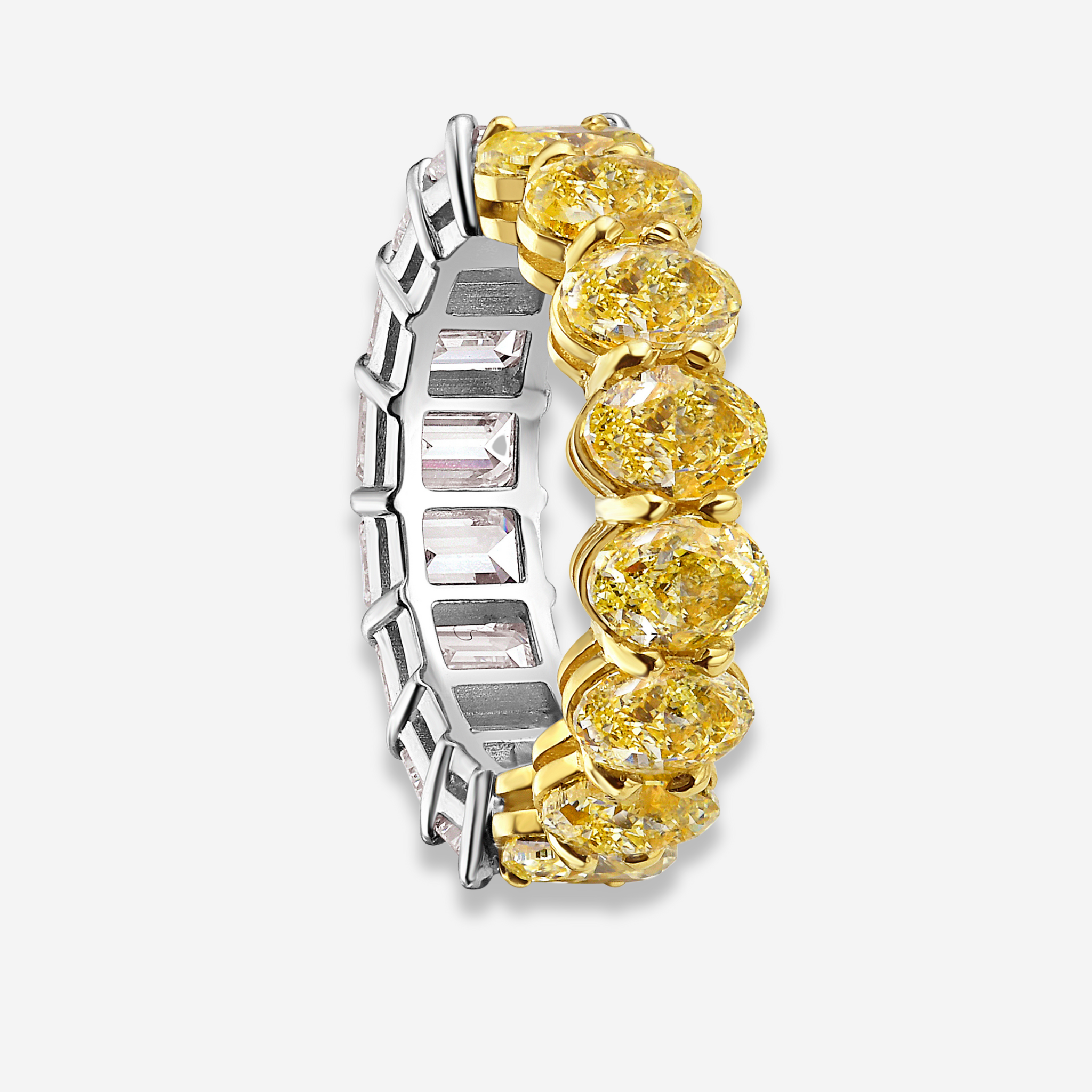 Yellow Oval and White Emerald Cut Diamond Half and Half Eternity Band