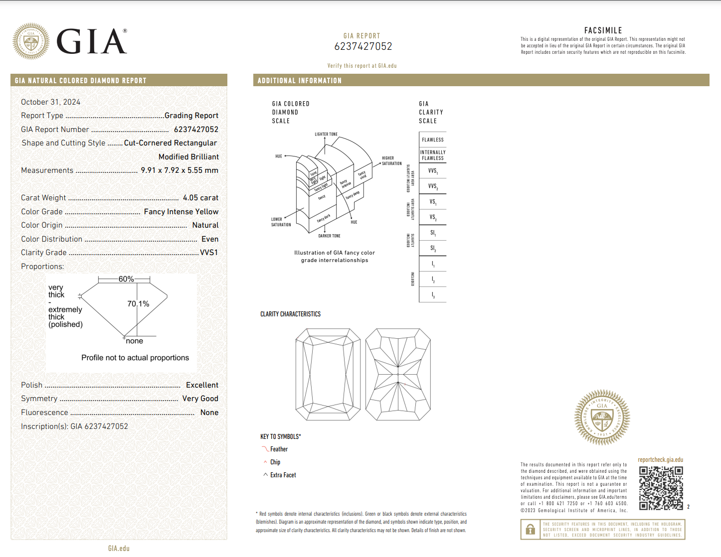 4 Carat Fancy Intense Yellow Elongated Radiant Diamond Engagement Ring