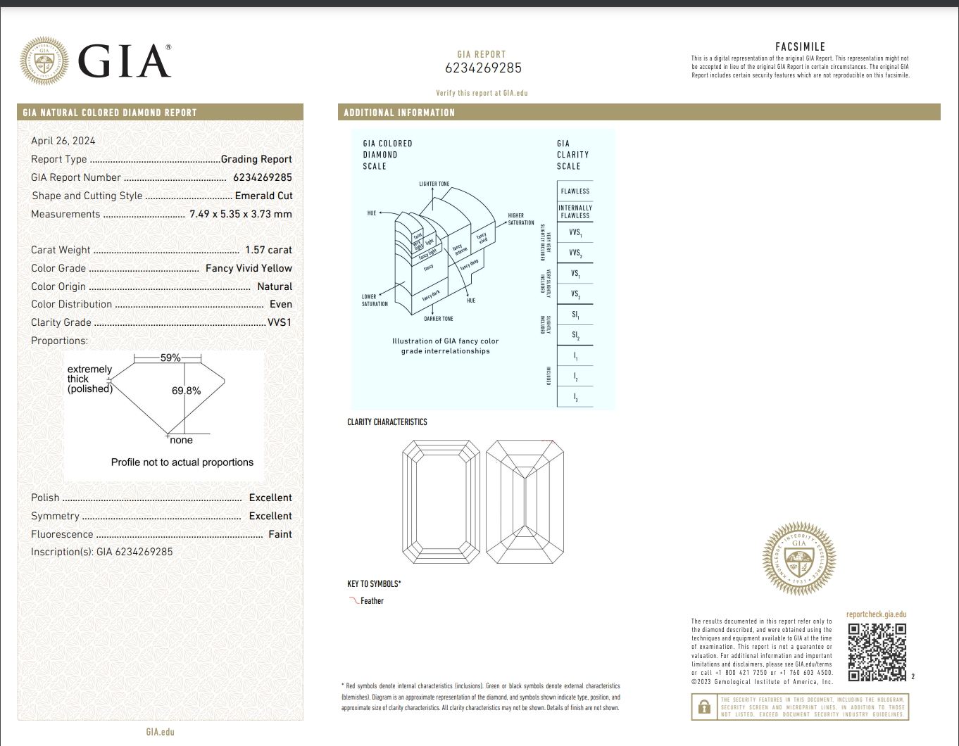 Vivid Yellow VVS1 Emerald Cut Diamond - Loose