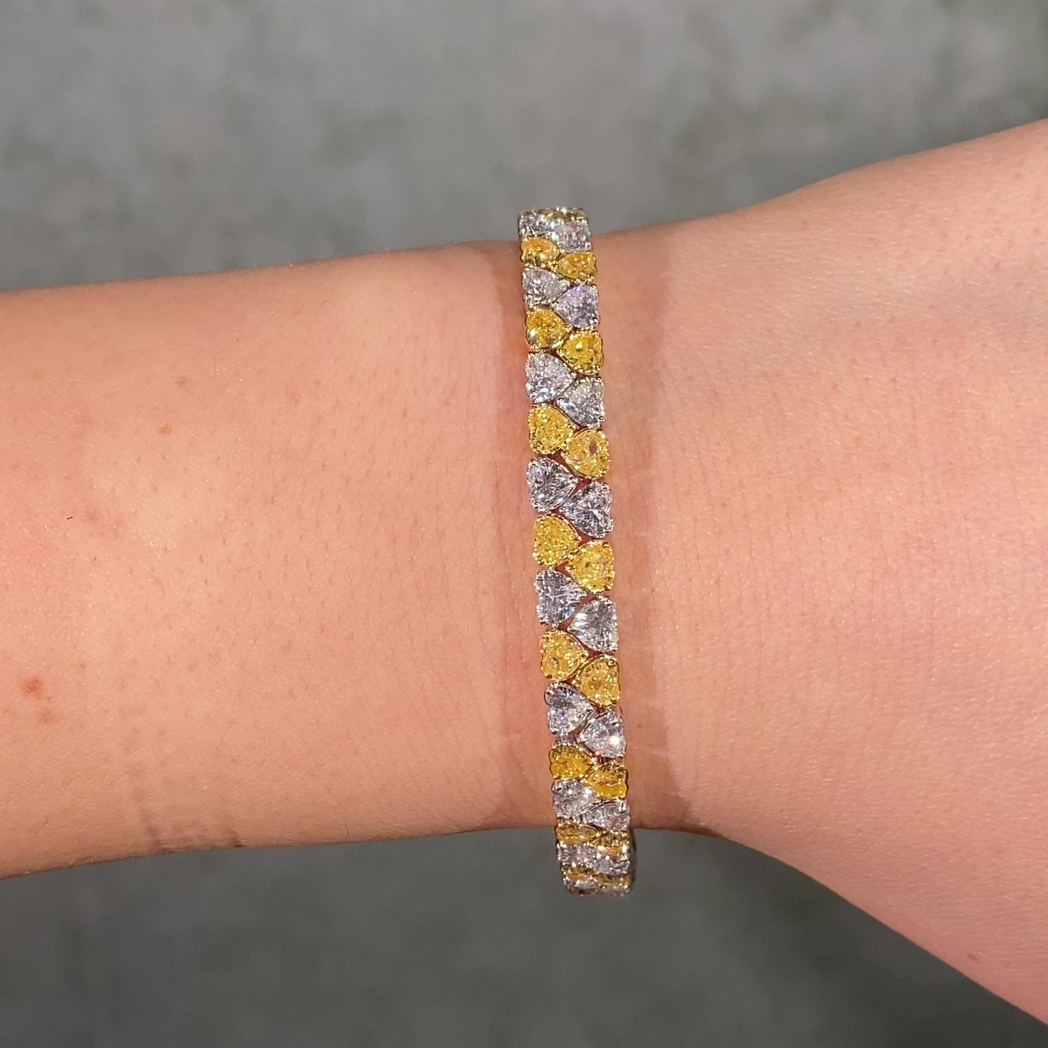 16 Carat Yellow and Colorless Heart Diamond Tennis Bracelet