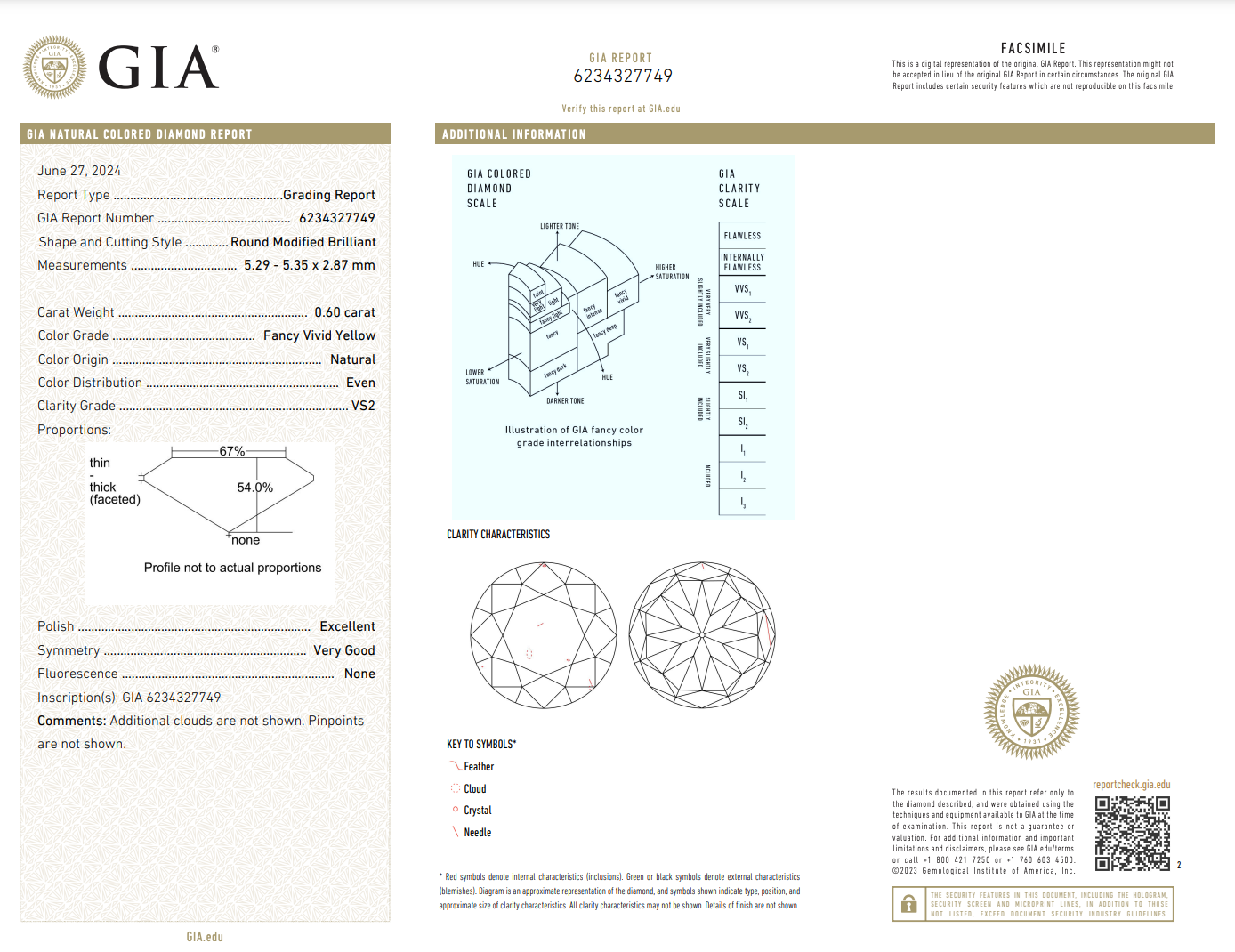 - 0.60ct Fancy Intense Yellow with VS2 Clarity