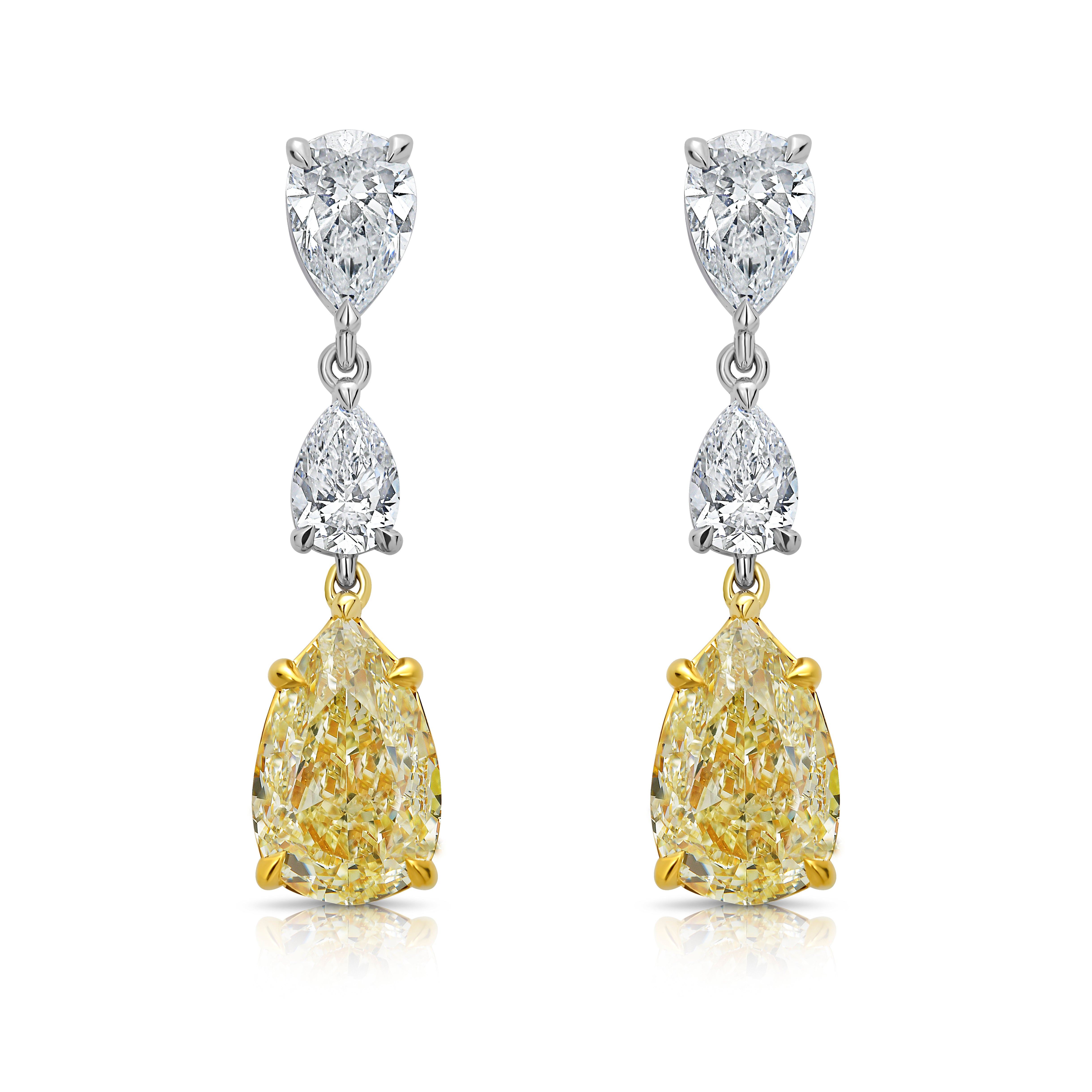 - 2 GIA Light Yellow Pear Shape Center Diamonds